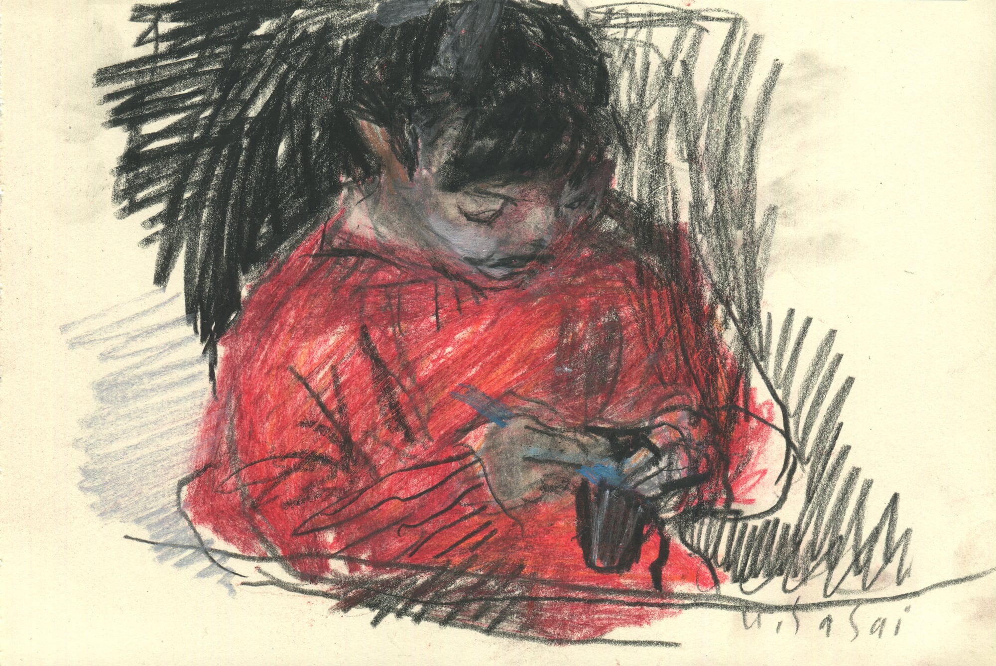 20.5x14cm Pencil and color conte on paper (140g/㎡) Signed 2026
