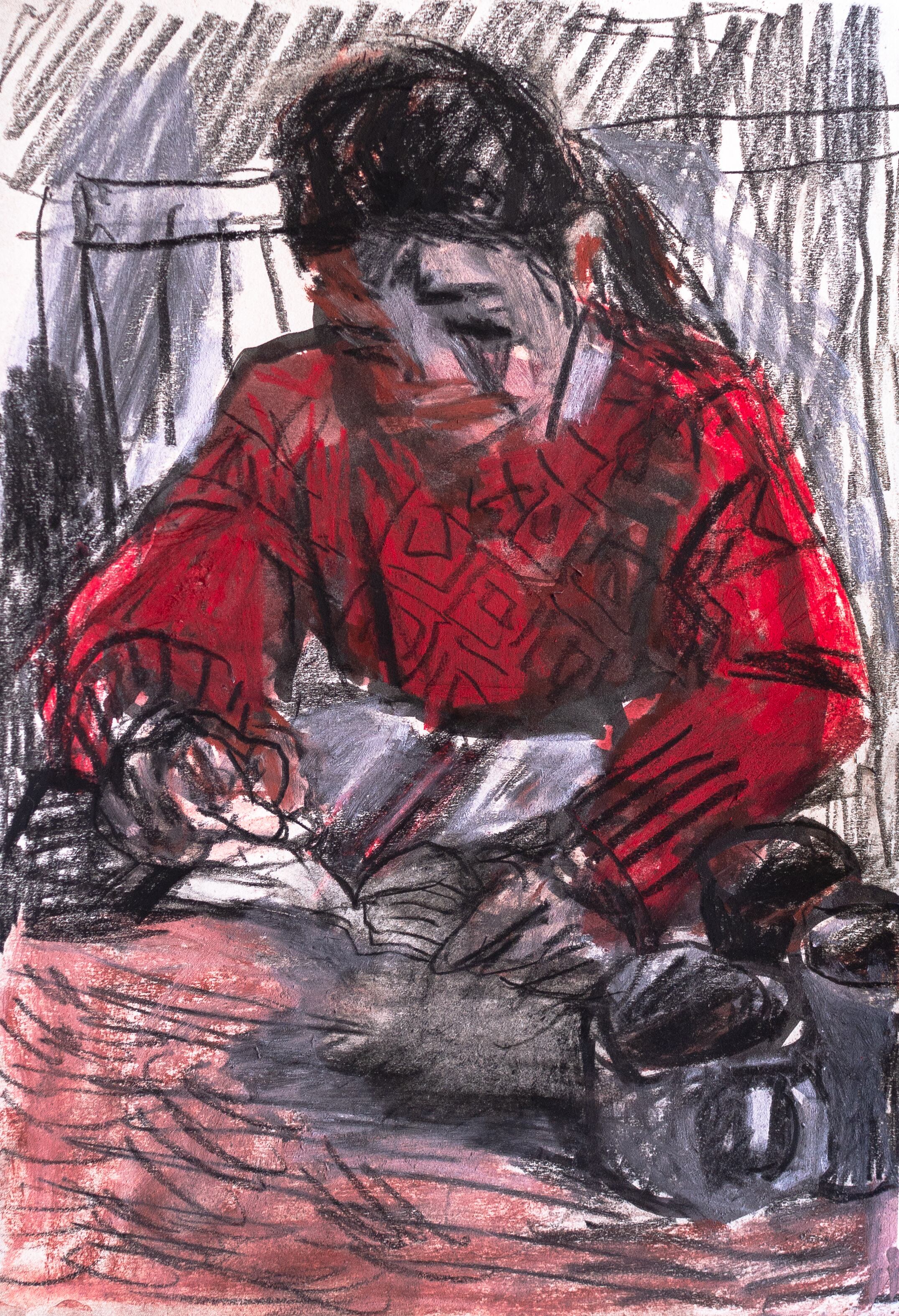 Pencil, watercolor and colored conte on paper (140g/㎡)